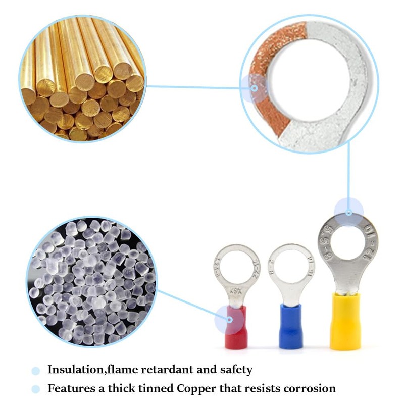 • High Quality insulated Ring terminals,wire Connectors are crafted from pure copper,Better conductivity, oxidation resistance and stronger corrosion resistance.