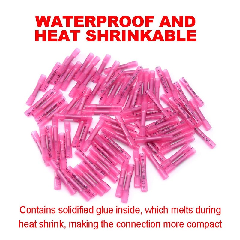 CEEYSEE Pack of 100 Cable Connectors, Insulated Waterproof Crimp Connectors, Shrink Connectors, Crimp Connectors, for 0.5-1.5 mm² Cable (Red/DRTH)