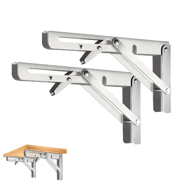CEEYSEE Pack of 2 Folding Console 300 mm Heavy Duty Stainless Steel Folding Console Folding Angle 90 Degree Space Saving Folding Shelf for Study, Garage, Office, Table, Home, Kitchen (Silver 300 mm)