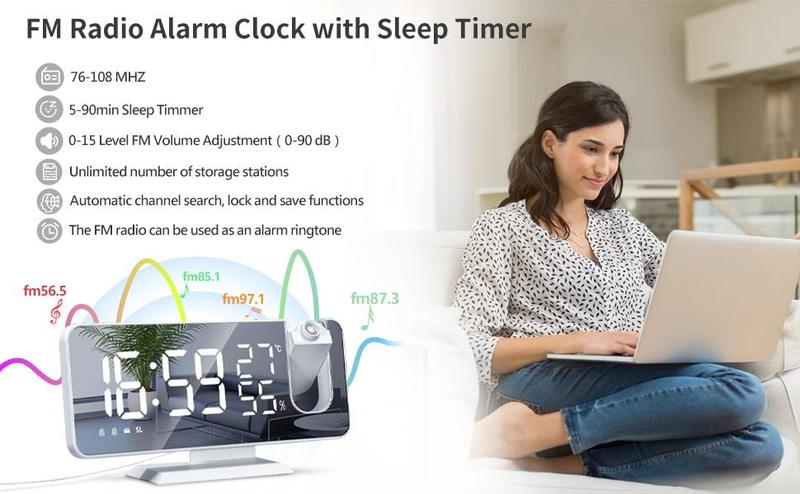 15 FM Radio Stations FM radio alarm clock can automatically search, lock, and storage unlimited number stations within 76-108 MHz.