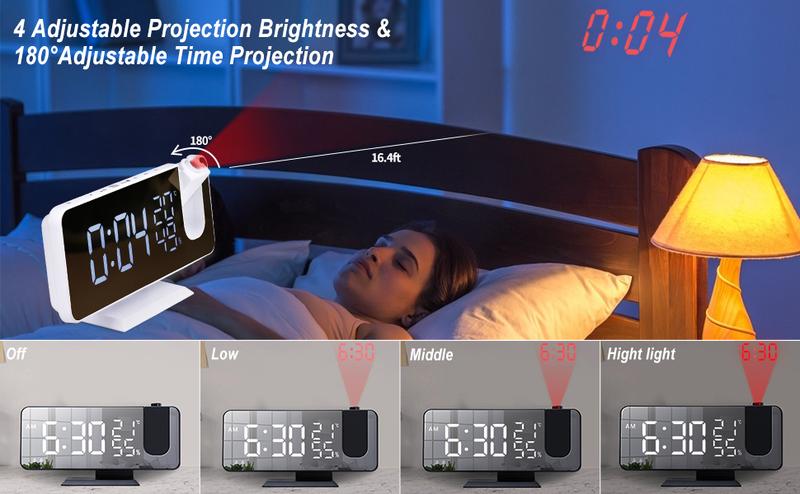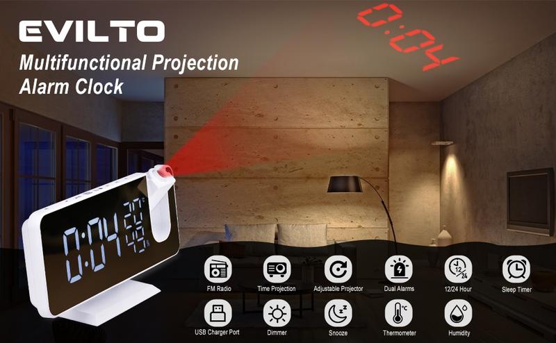 A: EVILTO projection clock is the latest mirror design, showing temperature and humidity as well, not only stylish and beautiful, but also a good partner for reporting the weather.
