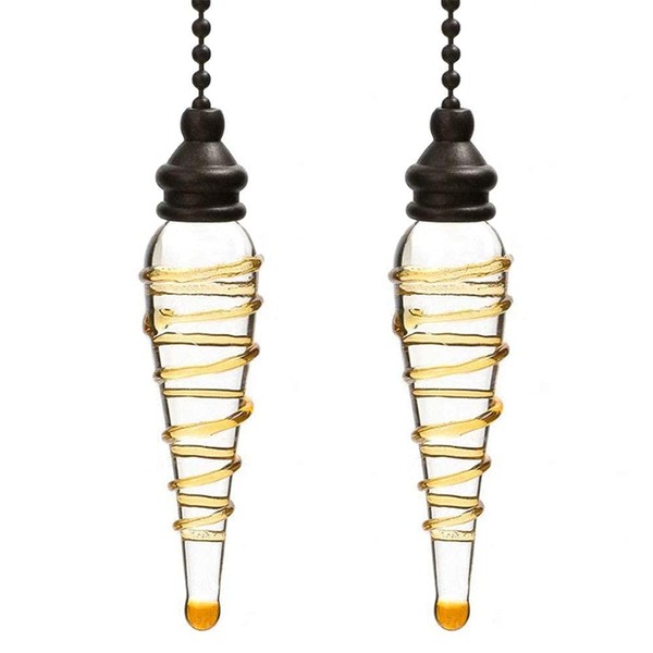 Akahttbn Ceiling Fan Pull Chains Ornaments 12 Inches Yellow Glass Pendant with Bead Pull Chain Connectors Decorative Extension for Ceiling Light Lamp Fan Chain 2 Pcs(Copper)