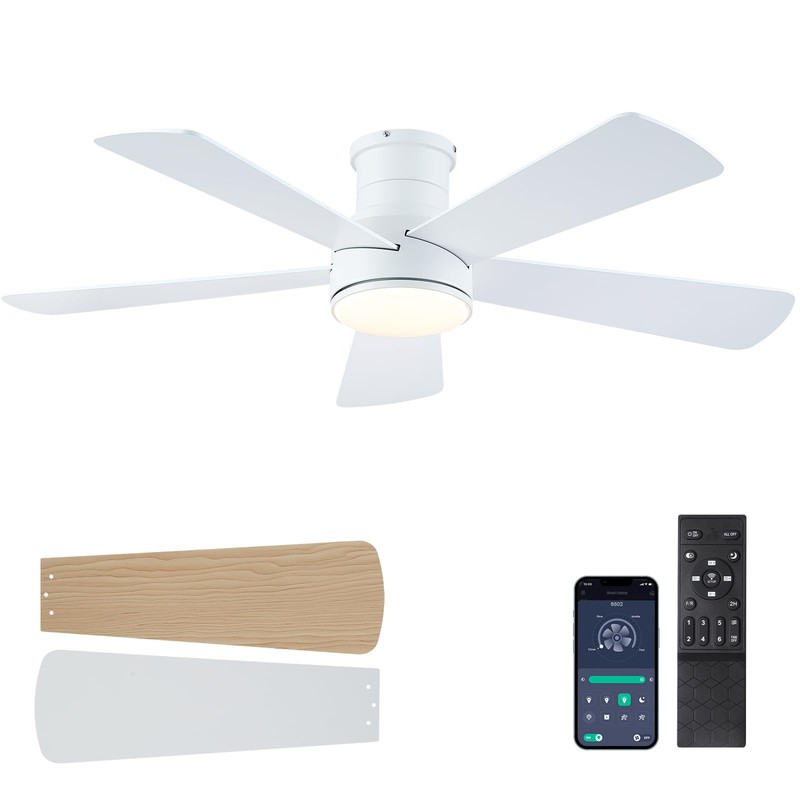 • 👍CONVENIENT REMOTE CONTROL AND APP: Easily control ,modern low profile ceiling fan and lighting functions from anywhere in the room with the included remote control or through our user-friendly mobile app.