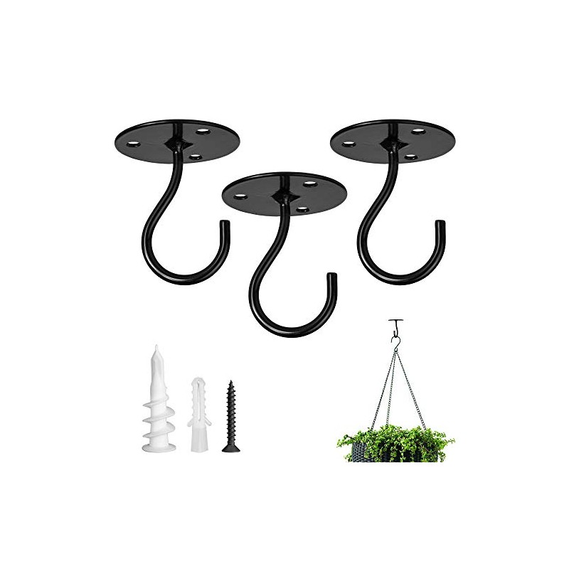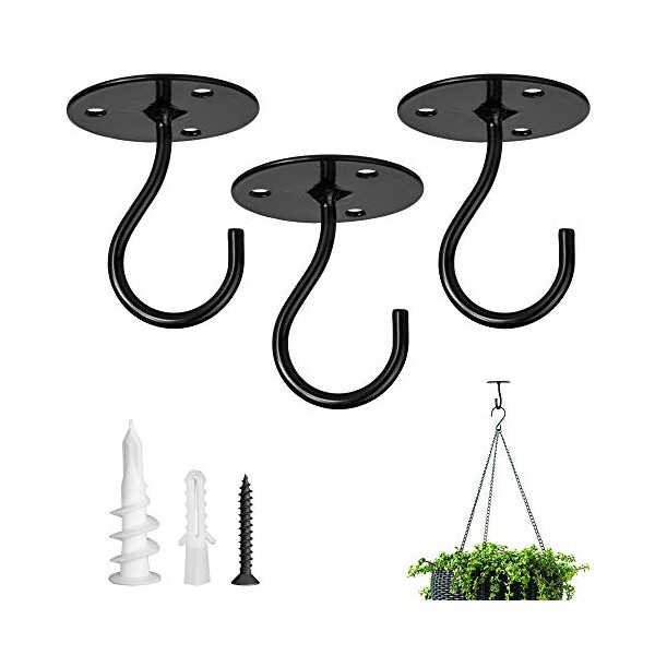 Ceiling Hooks for Hanging Plants - Heavy Duty Wall Mount Hanger Bracket for Hanging Bird Feeders, Lanterns, Wind Chimes, Planters, Outdoor Decoration -ï¼3 Pack-Black)