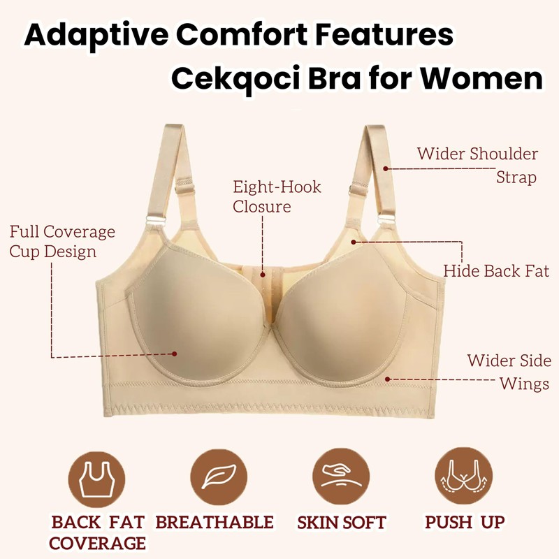Cekqoci Women's Push Up Bra Hide Back Fat Full Coverage Bras with High Suppor...