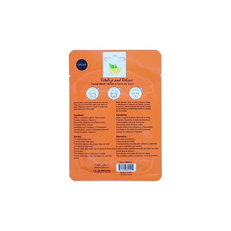 Celavi Essence Facial Mask Paper Sheet Korea Skin Care Moisturizing 24 Pack (Vitamin C)
