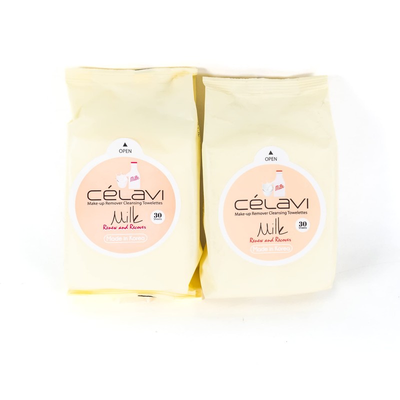 Celavi Makeup Remover Cleansing Wipes Removing Towelettes 2 Packs - 60 Sheets (Milk)