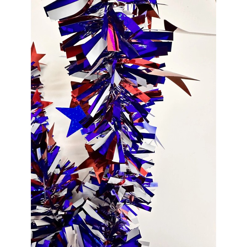 Celebrate Patriotic Jumbo Red / White / Blue w/Jumbo Red & Blue Stars Garland, 9 ft