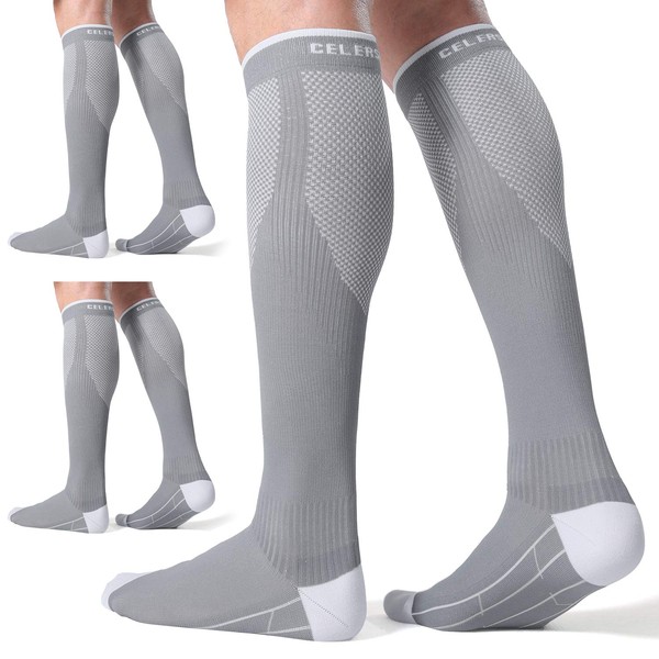 CelerSport 3 Pairs Compression Socks for Men and Women 20-30 mmHg Running Support Socks, Grey (3 Pack), Large/X-Large