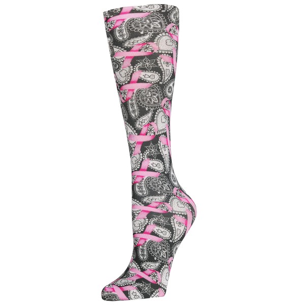 Celeste Stein Therapeutic Graduated Compression Socks, Black and Pink Michelle's Ribbons, 8-15 mmHg Queen Plus Calf