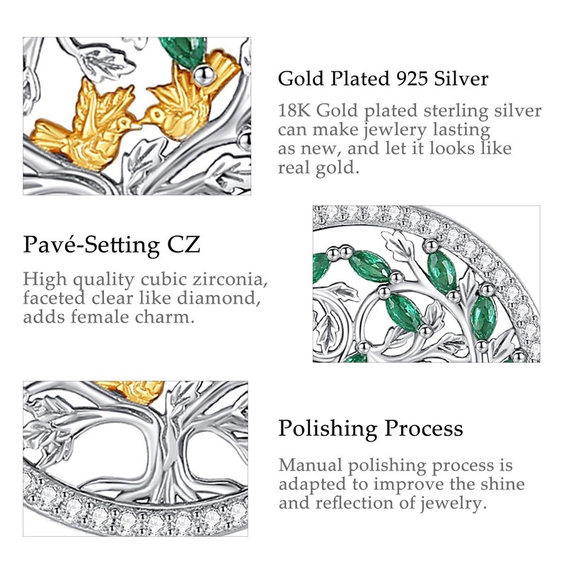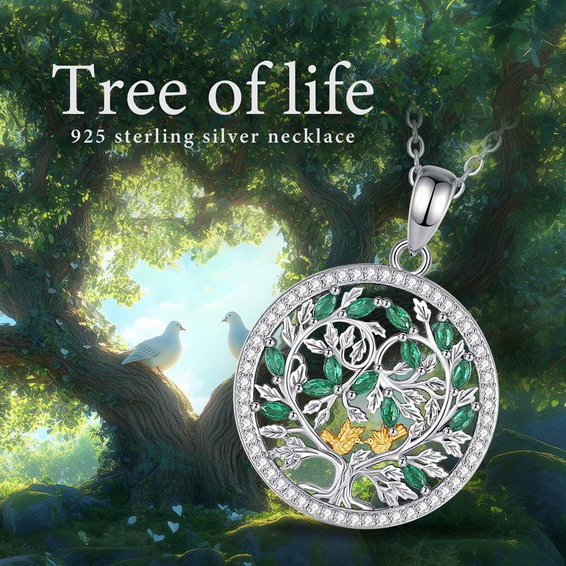 - Quality material: the tree of life pendant is made of sterling silver and decorated with sparkling green and white zirconia stones. The gold-plated birds made of 925 silver add a touch of glamour and sophistication to the jewellery.