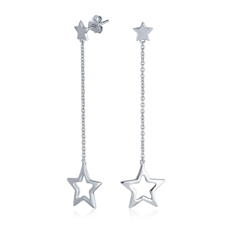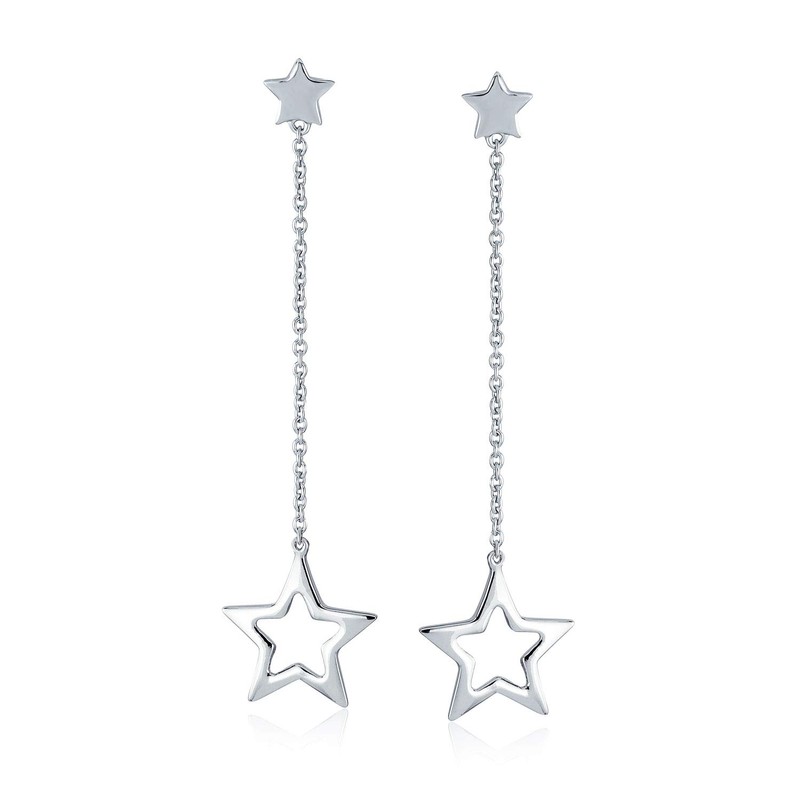 Celestial Astrology Open Star Linear Drop Dangle Stud Earrings For Women 925 Sterling Silver