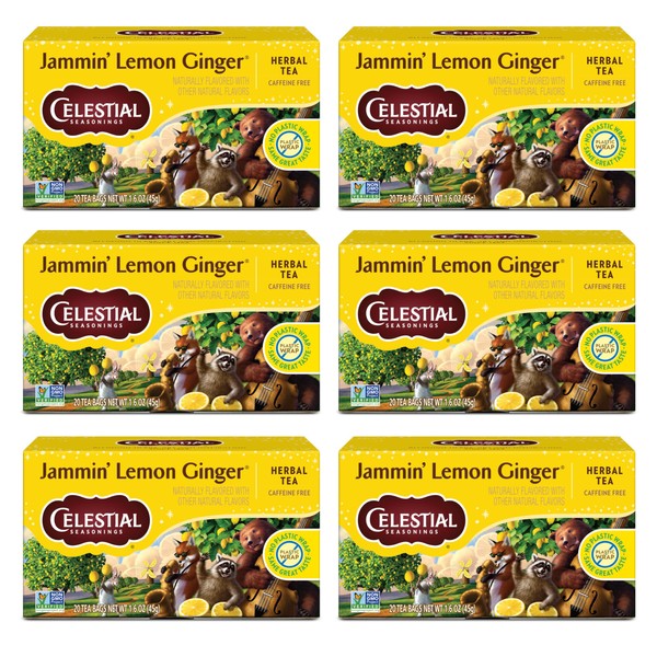 Celestial Seasonings Jammin' Lemon Ginger Herbal Tea, Caffeine Free, 20 Tea Bags Box (Pack of 6)
