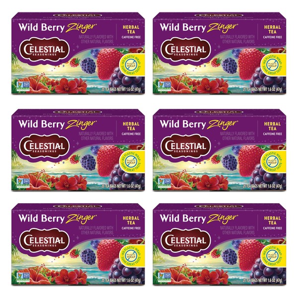 Celestial Seasonings Wild Berry Zinger Herbal Tea, Caffeine Free, 20 Tea Bags Box, (Pack of 6)