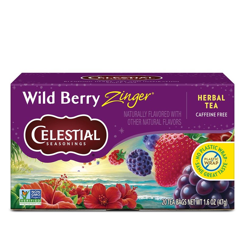 - One 20-count box of Wild Berry Zinger Herbal tea bags