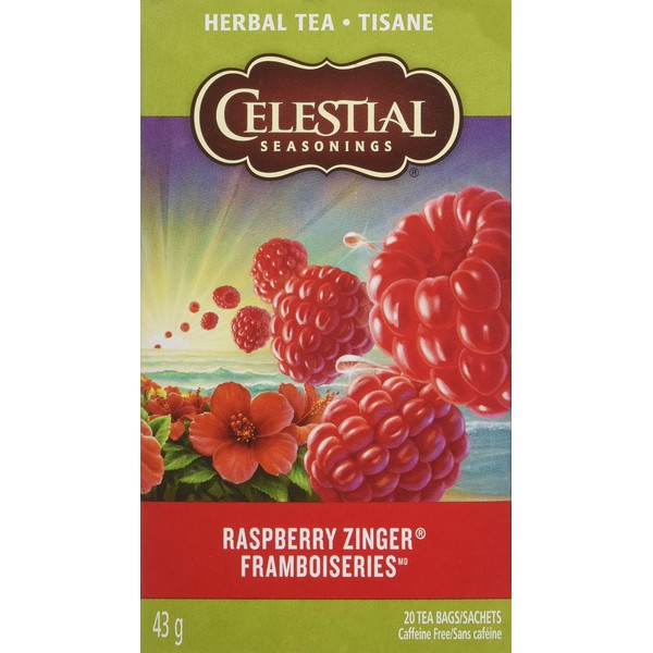 Celestial Seasonings Raspberry Zinger Herbal Tea, Caffeine Free, 20 Tea Bags Box, 6-Pack