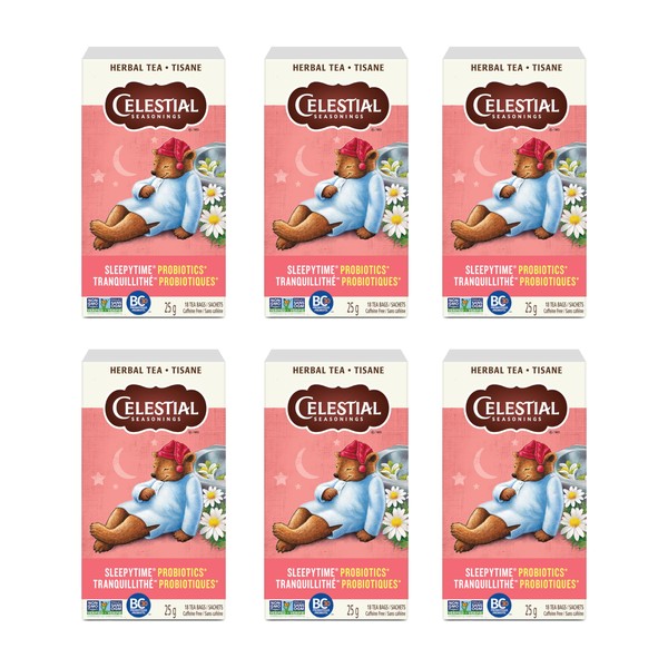 Celestial Seasonings Sleepytime Wellness Tea Plus Probiotics, Caffeine Free, 18 Tea Bags Box, 6-Pack
