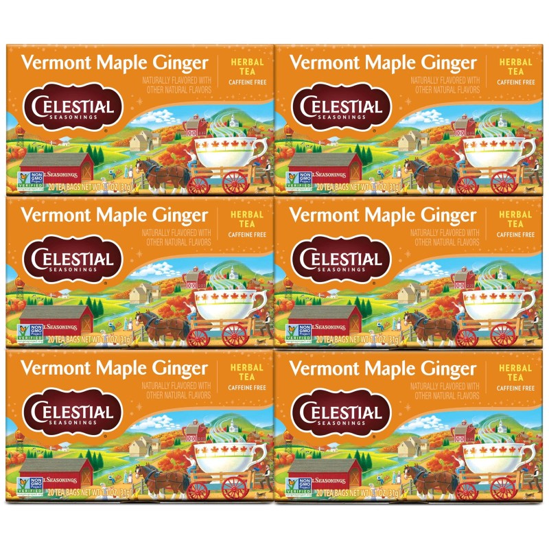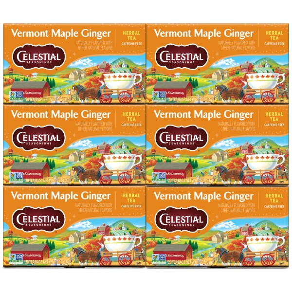 Celestial Seasonings Vermont Maple Ginger Herbal Tea 6 Boxes 20 Count Each