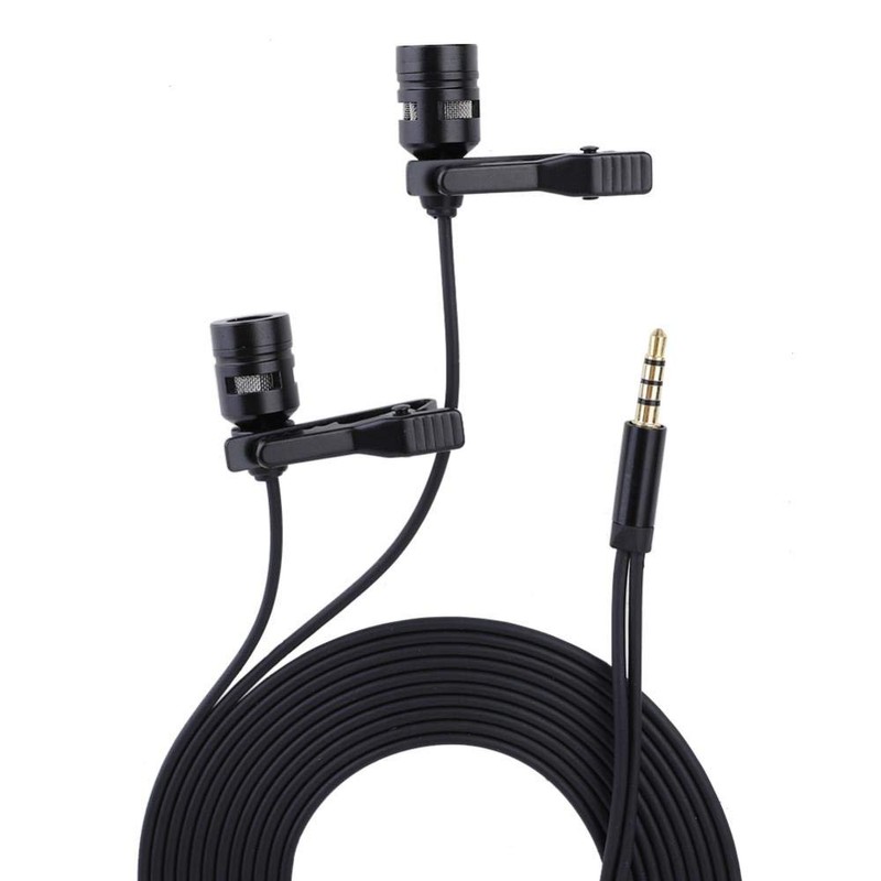 Cell Phone Microphone, Fosa Condenser Dual Head Microphone, Lapel Tie Clip Mic, 3.5MM Compatible with Smartphones, iPhones, Android Windows, Interviews with Clip Microphone