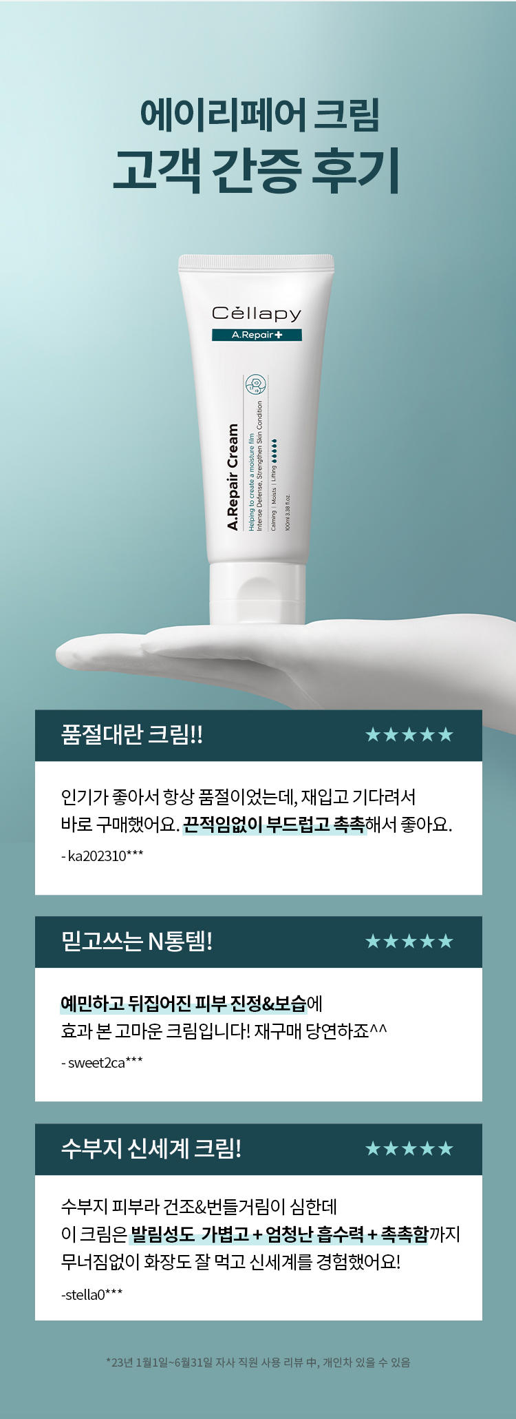 Cellapy A-Repair Cream (Large Capacity) 100ml 1+1+Cream 7ml*2 free / 셀라피 에이리페어 크림(대용량) 100ml 1+1+크림 7ml*2 증정
