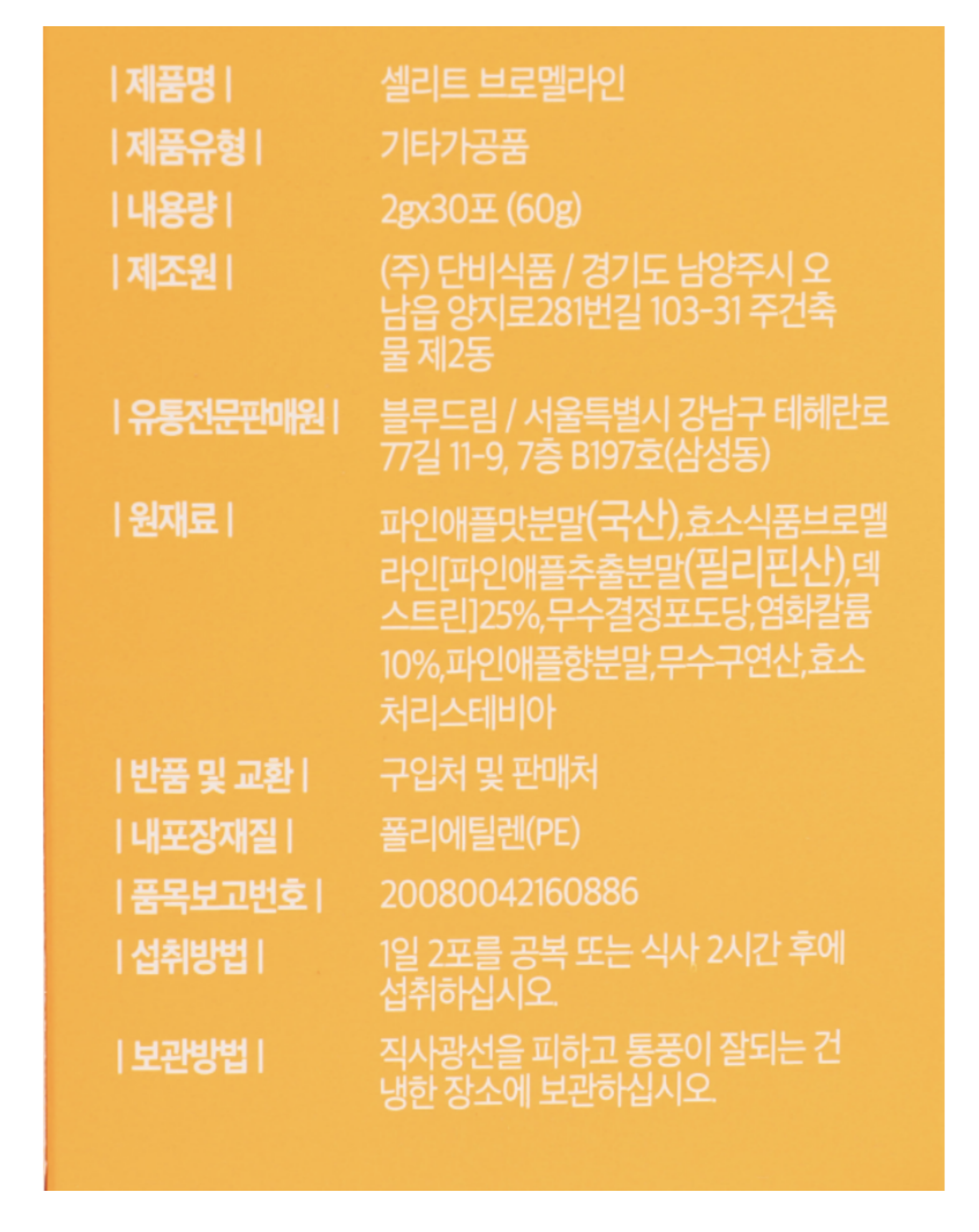 S'elite Bromelain 30 sachets (1 box), 셀리트 브로멜라인 30포 1박스