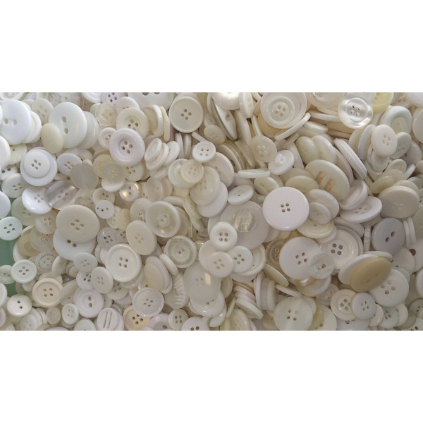 celloexpress White, Cream and Clear Buttons - Mixed Sizes of Various White, Cream and Clear Buttons for Sewing and Crafting - Pack of 250g