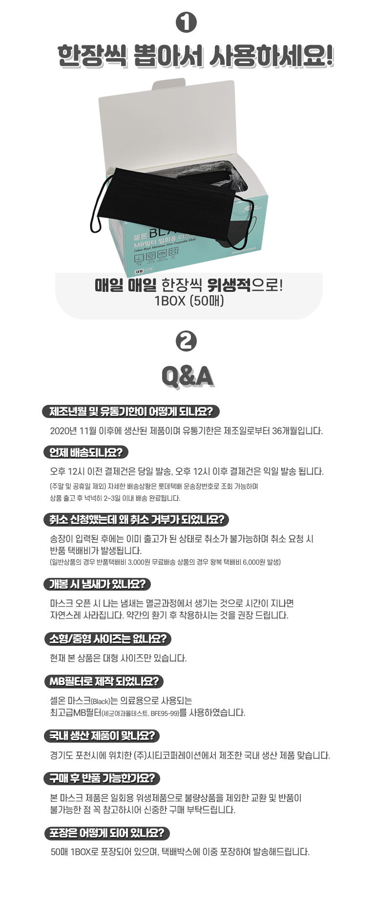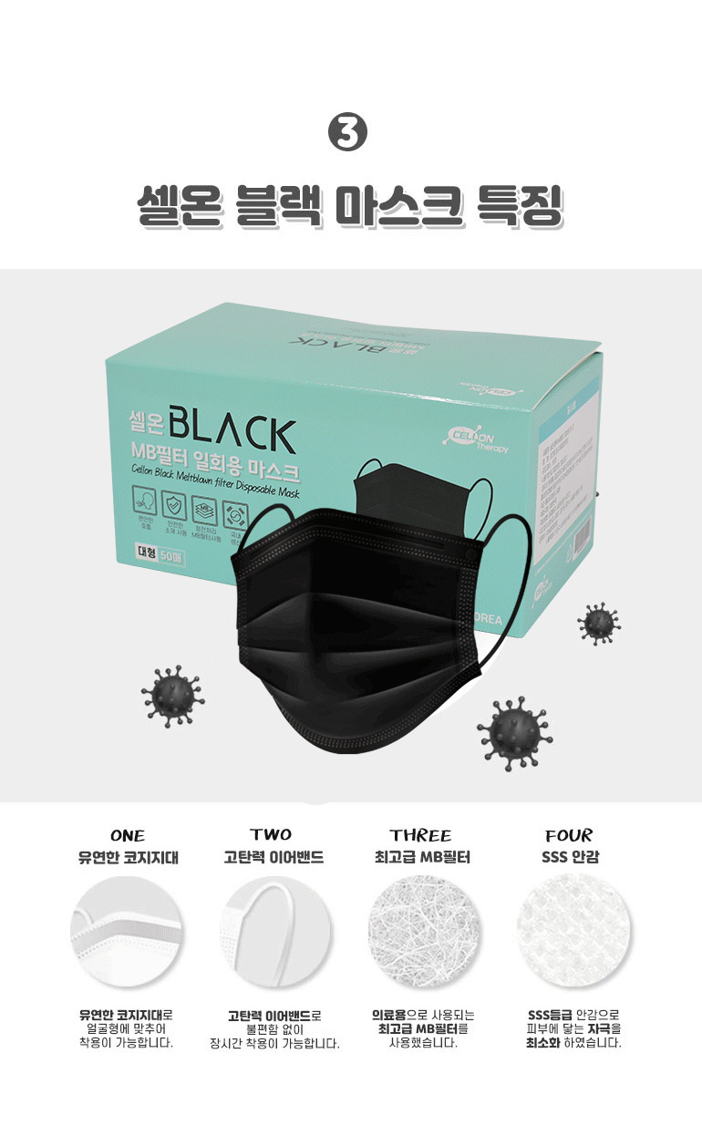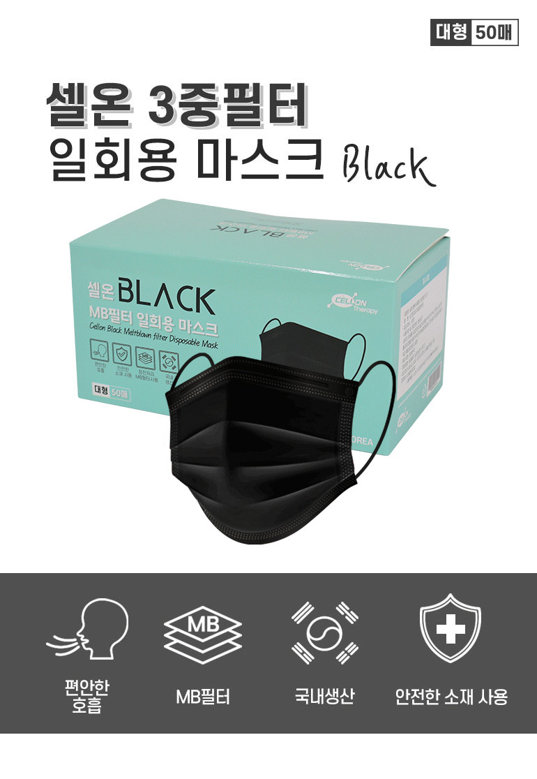 CellOn Domestic MB Filter Black Dental Mask 50 sheets large / 셀온 국산 MB필터 블랙 덴탈마스크 50매 대형