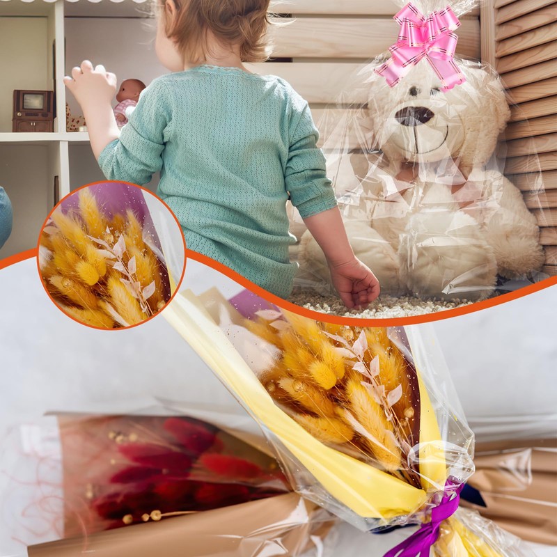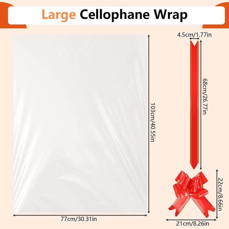 Cellophane Bags Large Pack of 5 70 x 100 cm Transparent Gift Wrap with 5 Loops