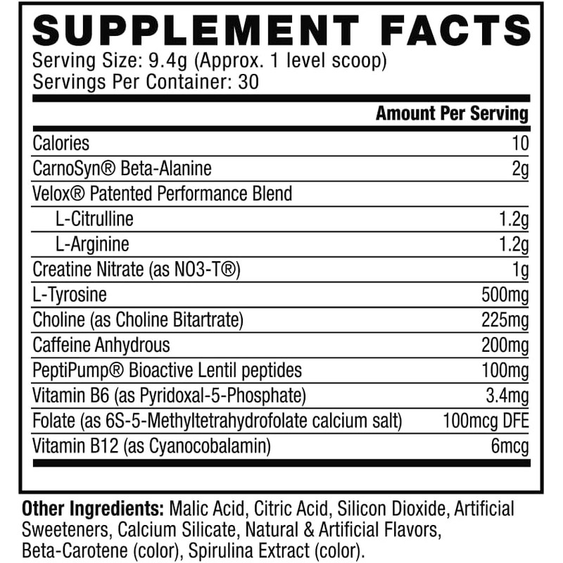 Mix one scoop (6.5g) with approximately 177ml of water and consume 20-30 minutes before your workout