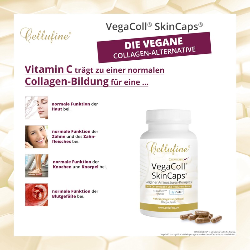 - For your beauty: vegan complex with vitamin C from natural biofermentation to stimulate the body's own collagen formation. Optimised with vegan amino acids, ceramides and hyaluronic acid - 180 vegan capsules in environmentally friendly storage container for a whole month. Vegan clean label quality at its best.