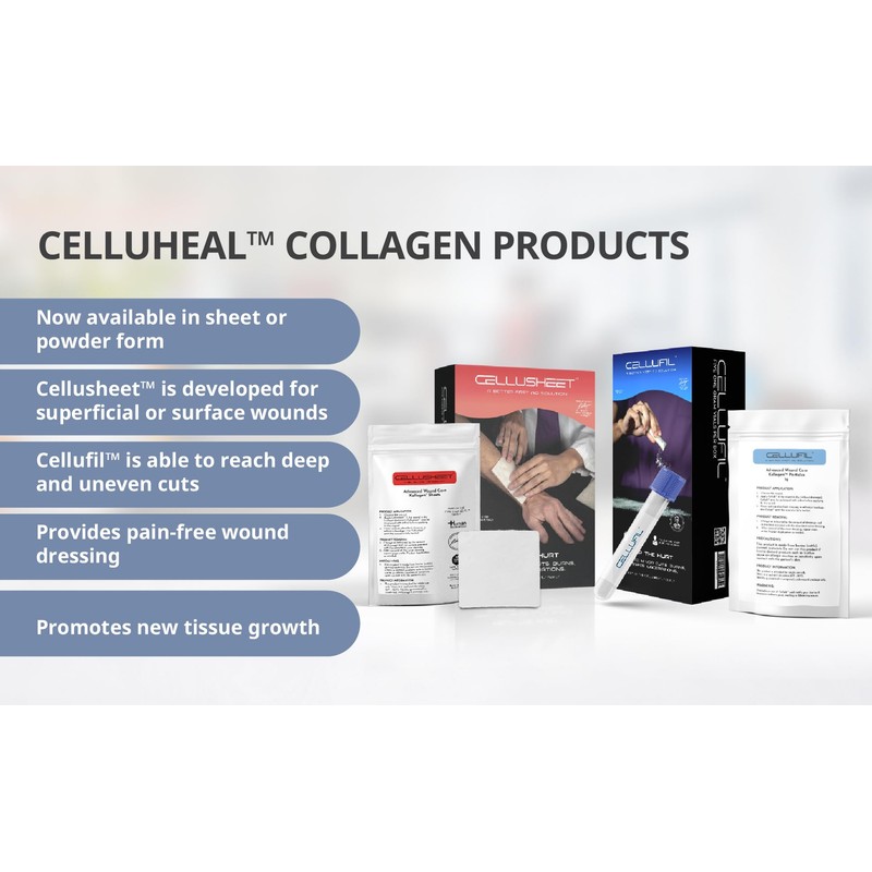• EASY APPLICATION C Choose powder for larger irregular shapes and sheets for shallow flat areas. Cleanse the wound with wound cleanser. Apply Cellufil or Cellusheet directly on the open wound. Cover the wound with an adhesive bandage and reapply when the bandage is wet or dirty.