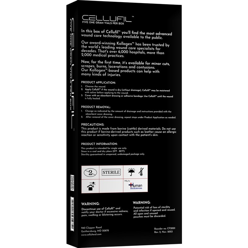 Cellufil Collagen Particles for Advanced Wound Care - Box of 5 Vials - 100% Non-Hydrolyzed Bovine Collagen for Tissue Regeneration, First Aid & Minor Bleeding