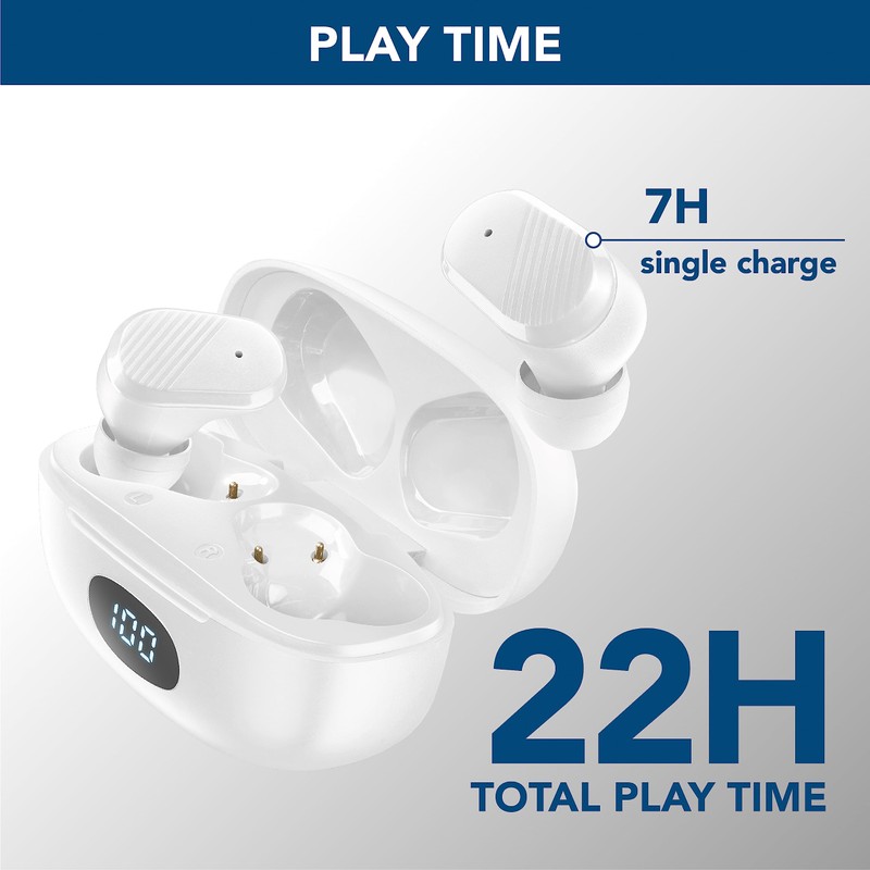 cellularline - DOT - Wireless Earphones with Charging Cradle with LED Display - Play Time 7H - Talk Time 4.5H - Play or Talk Time with the Case 22H - 45 Minutes Charging - White
