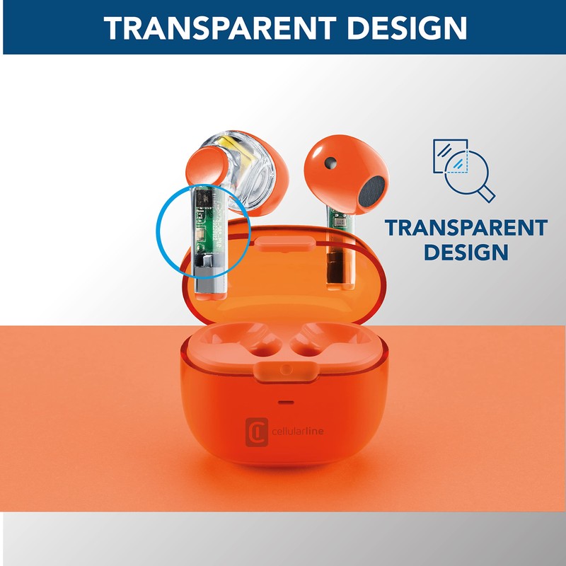 cellularline | FINE Transparent | TWS Wireless In-Ear Capsule Bluetooth Earphones with Charging Box - 3.5 Hours Playtime - 4 Times Charging - Touch Control and Automatic Pairing