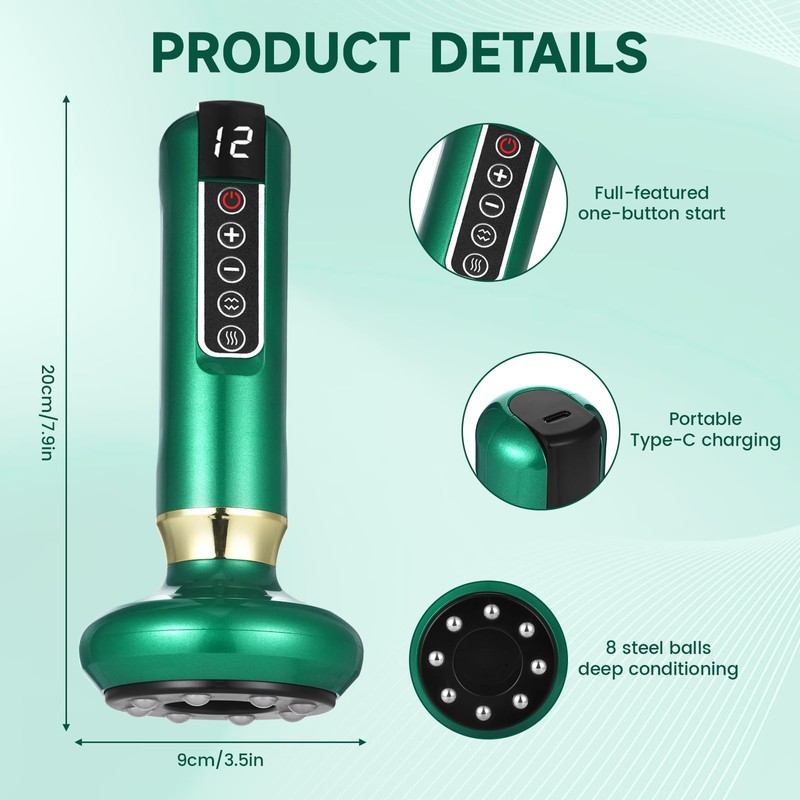- Ergonomic & Portable: Designed with a comfortable grip and lightweight structure, this smart cupping device is easy to maneuver.The guasha tool for body is perfect for home use or travel, ensuring muscle relief anytime, anywhere