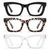 Celng Cat Eye Reading Glasses for Women - 3 Pack Blue Light Readers with Spring Hinge, Stylish Computer Glasses (Black+Leopard+Transparent, 0.75, Diopters)