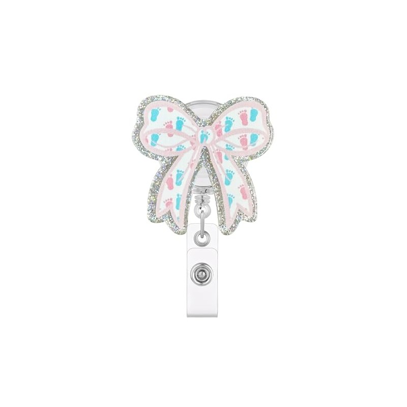 Celokiy Labor and Delivery Badge Reel, Pink Bow Retractable ID Holder for Nurses, OBGYN