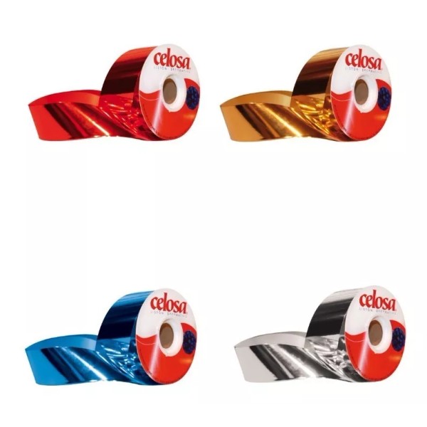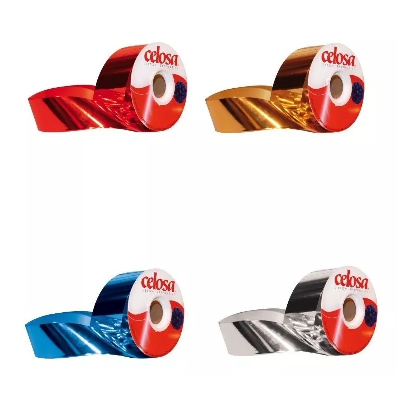 El liston Celosa Metalico es ideal para proporcionar un toque festivo a tus decoraciones. Su variedad en colores metalicos, permite realizar las mas hermosas creaciones. Disponible en ancho 5, 9 y 22 con 50 metros de largo.