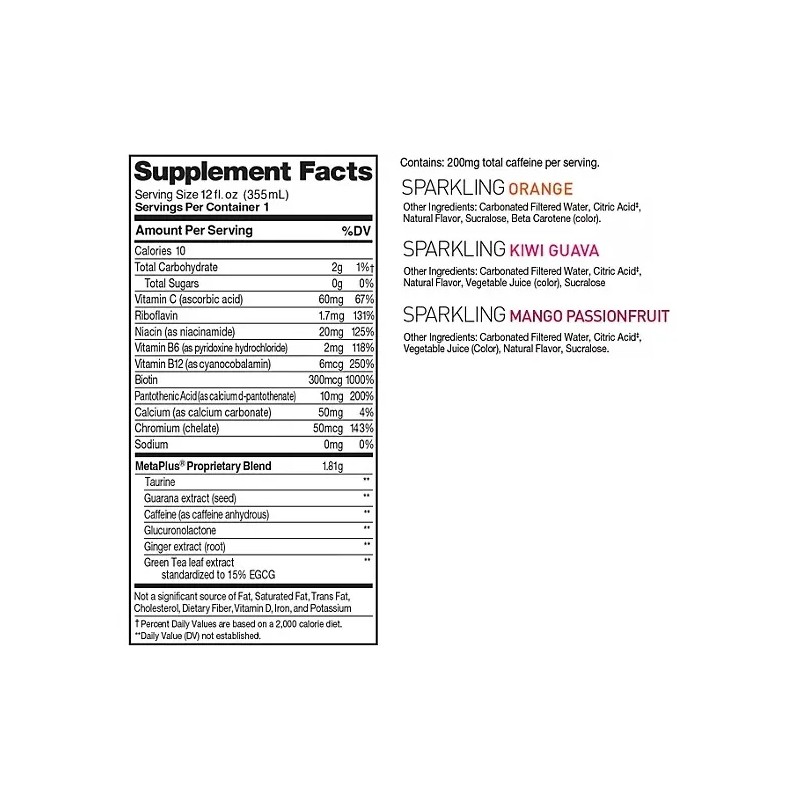 Ingredientes: naranja - agua filtrada carbonatada, ácido cítrico, sabor natural, sucralosa, betacaroteno (color)