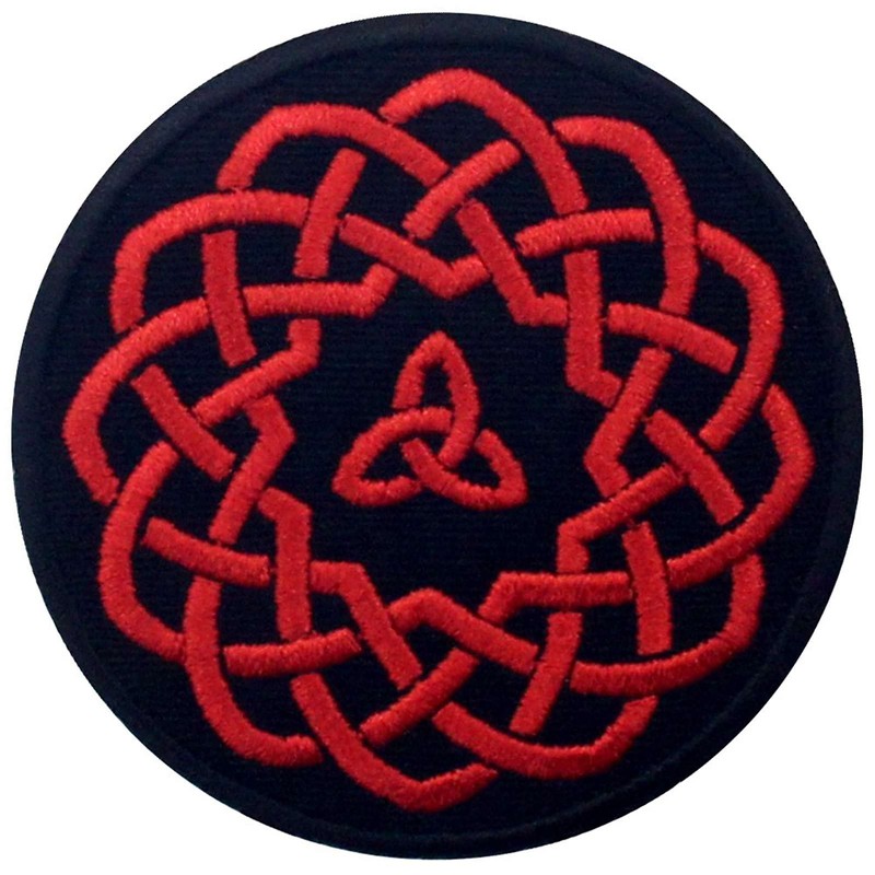 Celtic Knot Circle Patch Biker Applique Embroidered Iron On Sew On Emblem, Red & Black