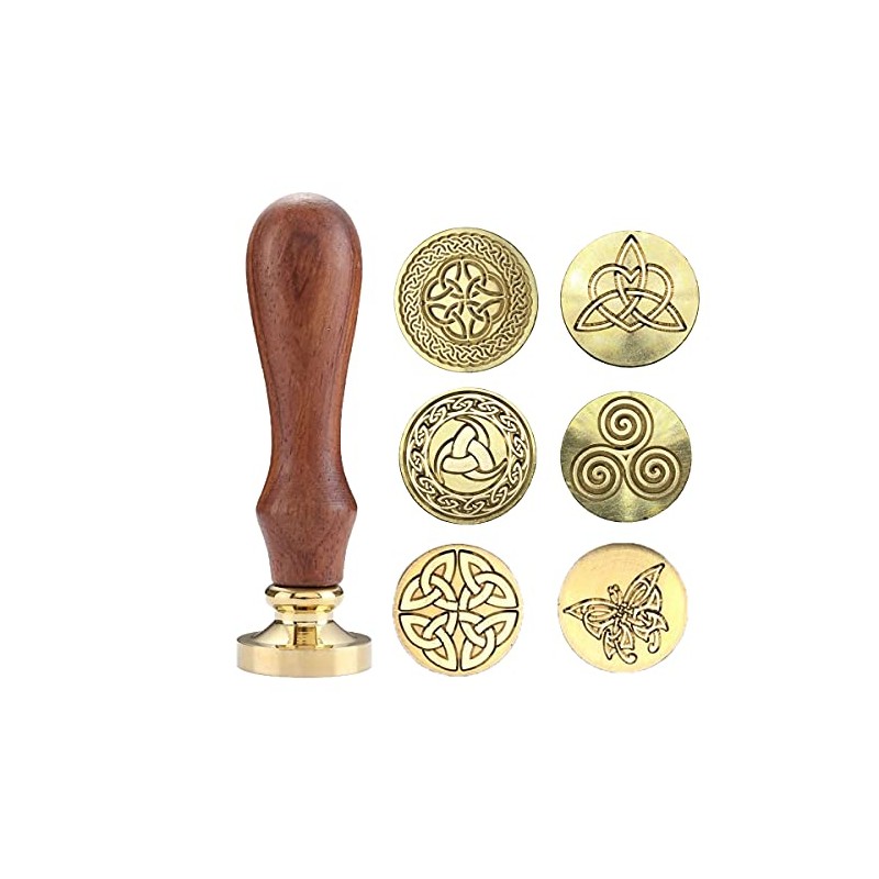 Celtic Knot Seal Wax Stamp with 6 Patterns Removable Brass Head + 1 Wood Handle, Represent Eternal Faith, Friendship, Love and Loyalty