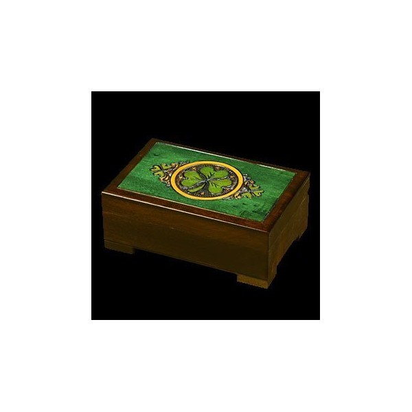 Celtic Shamrock Wood Polish Jewelry Keepsake Box Irish