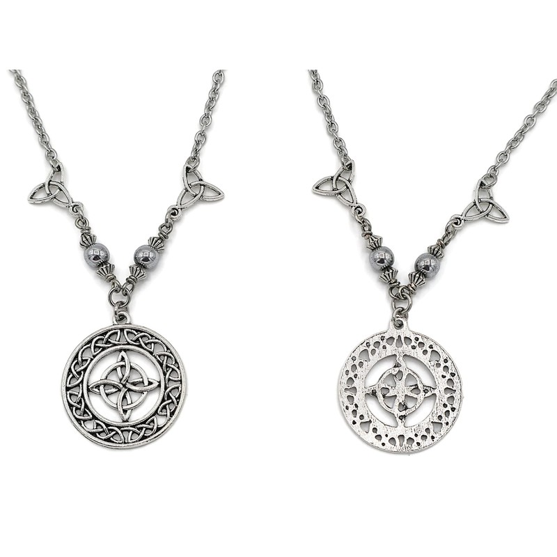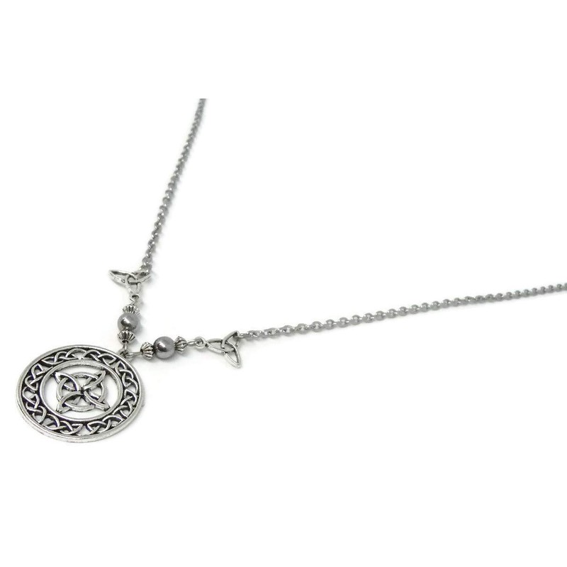 Celtic Witches knot Protection Necklace - Talisman with Triquetras - Wiccan Jewelry - Pagan Necklace with hematite Beads