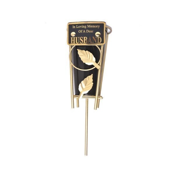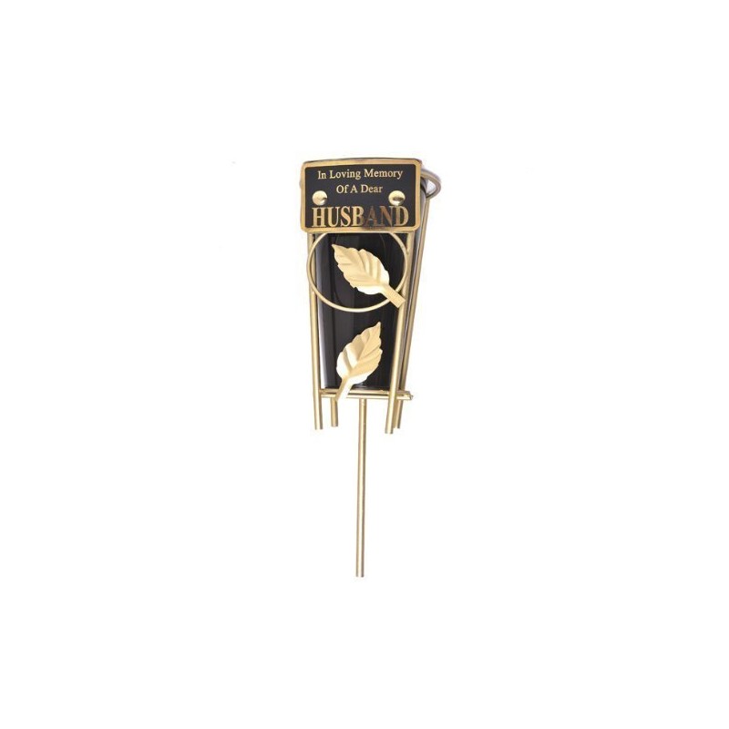 Cemetery Grave Vase with Metal Spike - In Loving Memory of a Dear HUSBAND plaque. Includes black plastic insert vase.