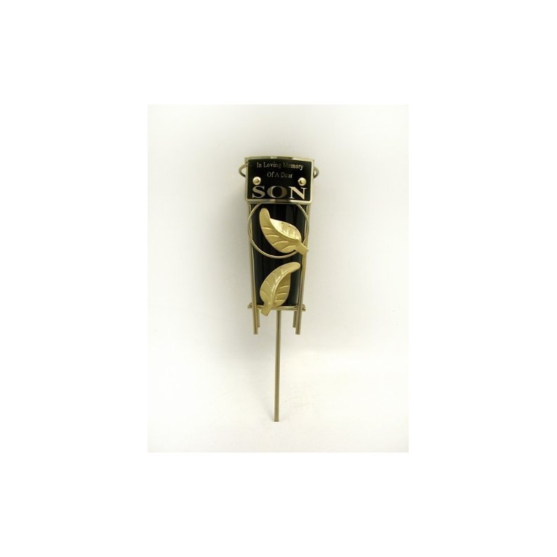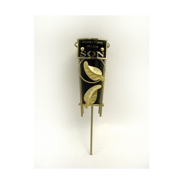 Cemetery Grave Vase with Metal Spike - In Loving Memory of a Dear SON plaque. Includes black plastic insert vase.