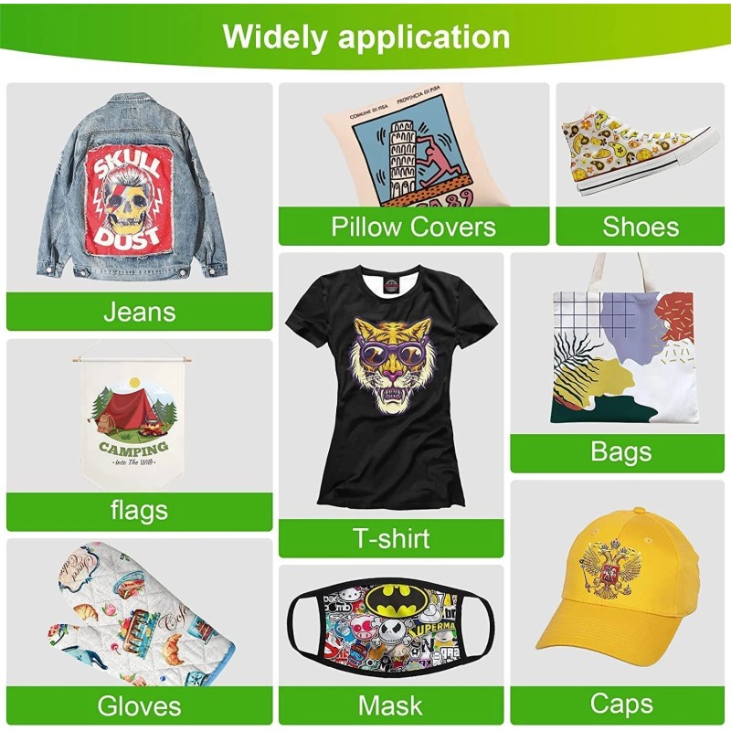 ✅ 【EASY TO US】 No PreTreat, you can create, print and cut to size you want NO WEEDING. You can print on non-treated cotton, Jeans,silk, polyester, denim, nylon,Lycra, leather, blends, and many other material.