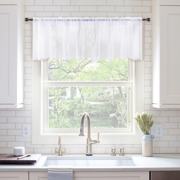 - Tamaño y material: el paquete incluye una cenefa de cortina de panel, 137 x 45 cm (desde el borde superior del bolsillo de la barra hasta la parte inferior transparente). Dobladillo inferior de 1 cm, hecho de mezcla de poliéster de alta calidad, suave al tacto.
