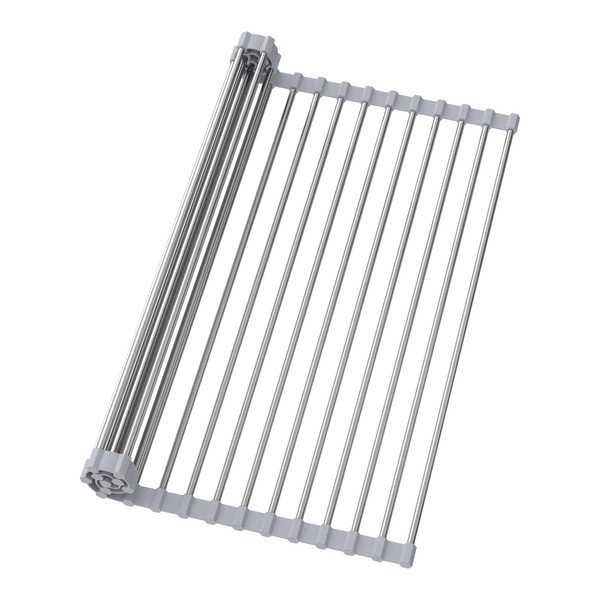 cenglng roll Dish Rack for Kitchen, Silicone Wrapped Dish Drying Rack, Silicone Wrapped Drying Rack (Gray)