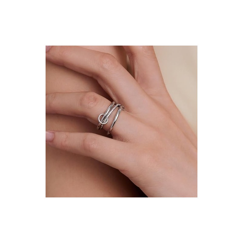 - Unique multi-ring design: This ring features a unique multi-band design with three main rings and two movable smaller rings. The center ring is set with AAAAA cubic zirconia, and it's nickel-free, lead-free, and hypoallergenic, making it perfect for most skin types. The design creates a layered, dynamic look, and the small rings move freely around the main bands, adding fun and flexibility so every time you wear it, you get a different visual experience.