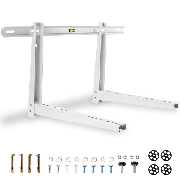 • 【PRODUCT SIZE】:The Mini Split Wall Mounting Bracket is compatible with most brands of wall mounted split air conditioners. It is adjustable to support mini split systems ranging from 18,000 BTU to 24,000 BTU. The length of the leveling rod is 31.5 inches, the length of the bracket is 21.65 inches. For safety reasons, we suggest tilting slightly backwards towards the wall